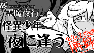 旧本編 【漫画】(旧)霊魔夜行 #2 怪異少年夜に逢う 【再録】澪摩を見つけた陽晃に差し向けられたものは……(10頁)2020年9月25日にpixivで公開した作品の再録です。🔞本投稿には刃物による暴力や内臓の露出などの要注意描写を含みます。 2024.01.14 旧本編漫画
